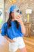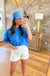 That exposed seam detail is doing all the work here. This oversized knit sweater in the prettiest cornflower blue has a relaxed, easy fit that looks intentional — not sloppy. Throw it on with your favorite white jeans for Saturday errands or pair it with linen pants when you're headed to a patio lunch. The elbow-length sleeves and dropped shoulders give it that effortless cool-girl energy, and the boxy silhouette is flattering without being fussy.