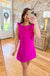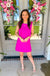 That hot pink is doing all the work for you. Whether you're walking into a Saturday brunch or showing up to a spring shower, this dress makes a statement without trying too hard. The bow details at each shoulder give it that extra something — feminine and a little flirty, but still clean and polished enough to feel put-together.