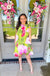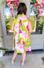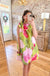 That watercolor floral print is doing all the heavy lifting here — bold splashes of pink, magenta, and lime green that look like someone painted a bouquet just for you. This is the kind of dress you throw on when you want to look completely put together without actually trying. The loose A-line shape swings when you walk, keeps you cool, and flatters without clinging to anything.