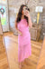 That textured lace detail is doing all the heavy lifting here. This pink maxi has the kind of intricate, dimensional fabric that makes people stop you mid-conversation to ask where you got it. From the round neckline to the sweet back keyhole, every angle has something worth noticing — and the lined construction means you get all that gorgeous texture without worrying about a thing underneath.