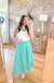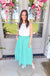 That chevron stripe detail where the fabric meets at the center? It creates the prettiest V-effect that makes this skirt look way more elevated than your typical midi. The green and white stripes are giving fresh spring energy, and the 100% cotton fabric keeps you cool when Louisiana humidity starts creeping in. Pair it with a fitted white top and you're ready for Saturday morning at the farmers market or a patio lunch date without even trying.