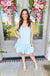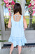 That baby blue is the kind of color that stops people mid-conversation. The Isla has a relaxed A-line shape that lets you breathe and move without sacrificing an ounce of style, and those layered ruffle tiers at the hem add the prettiest movement every time you walk. But the real surprise is in the back — a subtle open cutout with a delicate adjustable tie closure that gives just enough detail to make you feel like you dressed with intention, even if it took you five minutes.