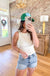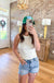 A good cream tank is the kind of thing you reach for three times a week without thinking about it. This one earns that spot. The ribbed knit gives it just enough texture to look intentional on its own, and the slightly cropped length sits right at the waist of your favorite high-rise jeans or a flowy midi skirt. That round neckline keeps it clean and simple — layer it under a linen blazer for a work lunch or wear it solo with your best gold necklace when you're grabbing margaritas with the girls on a Friday night.