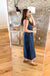 The halter neckline with that sharp collar detail gives you structure up top, while the a-line legs flow like a dream when you walk. The lightweight cotton drapes beautifully without clinging, so you look polished even when Louisiana humidity has other plans.
