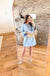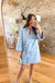 That powder blue hits different against a Louisiana sky, and those 3D flower appliques catch the light just right. The split neckline with collar keeps it sweet but sophisticated, while the flowy fit skims your body in all the right places. Three-quarter sleeves mean you're covered but not covered up - perfect for our unpredictable weather.