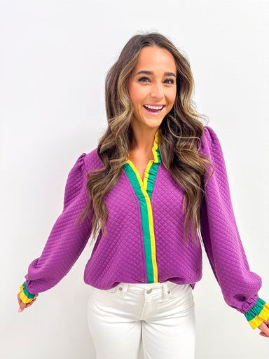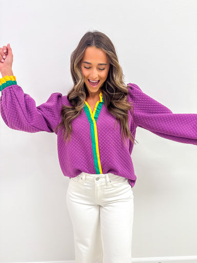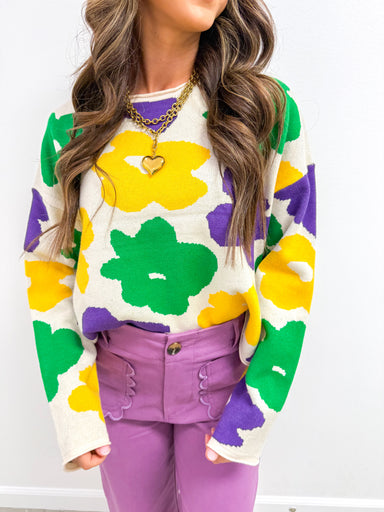 Soft. Vibrant. Effortlessly festive. The sweater that brings Mardi Gras energy to your everyday wardrobe without feeling costume-y. Bold purple,...