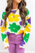 Soft. Vibrant. Effortlessly festive. The sweater that brings Mardi Gras energy to your everyday wardrobe without feeling costume-y. Bold purple, green, and yellow florals pop against a cream base, giving you that playful, spirited look that works from brunch to game day to girls' night out.