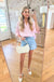 This striped pink blouse is the perfect blend of classic and chic. Designed with a timeless collar neckline and flattering V-neck front, it features short sleeves and a comfortable straight fit for easy, everyday wear. The waist-length cut makes it ideal for pairing with denim, trousers, or skirts.