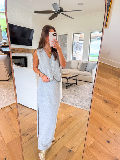 Meet the Holly Grey Sweater Vest—a cozy-meets-polished staple you'll reach for season after season. Crafted in a soft heather grey knit, this sleev...