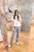 A black gingham jean is the kind of piece that makes people ask where you got your pants — and you'll love telling them. The pattern reads bold without being loud, giving you that fun, put-together energy whether you're running Saturday errands or heading to a crawfish boil with friends.