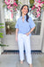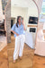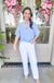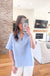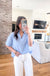 The classic blue and white gingham gets elevated with the sweetest ruffle neckline that frames your face just right. Real working buttons down the front mean you can style it buttoned up for a polished look or leave a few undone for something a little more relaxed. The straight fit hits right at your hips - flattering on everyone and perfect for tucking in or wearing loose.