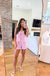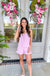 That candy-pink stripe with the ruffle details? It's giving cute pajama set energy, but make it outfit. This coordinated top and shorts duo is the kind of set you throw on for a lazy Saturday morning coffee run, a girls' trip poolside hangout, or lounging on the patio while the crawfish boils. The tie-front neckline and ruffled shoulder straps add just enough charm to keep it from looking like you rolled out of bed — even if you kind of did.