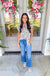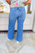 The medium wash has that perfectly worn-in fade without looking like it's trying too hard, and the raw-cut hem keeps things clean and modern. Pair them with a tucked-in blouse for a Louisiana wedding shower or throw on a graphic tee for Saturday errands — they do both without blinking. That 10.5-inch rise sits right where you want it, so bending down at school pickup or chasing your kids through a festival feels totally comfortable and totally cute.