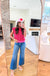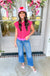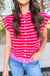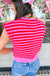 Available in two colorways that honestly both deserve a spot: pink and red striped for the bold days, navy and baby blue striped when you want something a little more laid back. The straight, boxy fit keeps it relaxed without looking oversized, and the cap sleeves are just the right amount of arm coverage for spring.