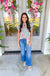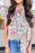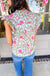 That pink and blue floral print is giving all the spring energy you didn't know you needed. Fresh, bright, and just the right amount of playful — this top pairs back to denim, white shorts, or your favorite linen pants without even trying. The ruffle cap sleeves and split neckline add a little something extra that takes it from basic to "oh, she's cute" in about two seconds.