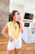 That soft pale yellow is giving all the spring energy. This slightly cropped top has the kind of easy polish that makes jeans and a cute pair of sandals feel like an outfit — gathered shoulders and cap sleeves add just enough detail to keep things interesting without trying too hard. Throw it on for Saturday errands, a patio lunch with your girls, or layered under a linen blazer when you want to look a little more pulled together for work.