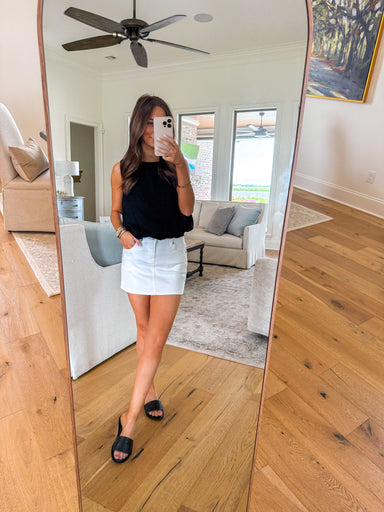 Elevate your everyday style with the Alta White Top—a fresh and modern take on the classic tank. Designed with a flattering bubble hem for a softly...