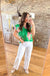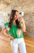 The one you wear when you want to be the girl everyone asks "where did you get that top?" Those dramatic ruffle sleeves and gorgeous green floral print don't just look expensive - they make you feel like the best-dressed woman in the room. Perfect for Louisiana wedding season, Sunday brunch with the girls, or any day you need a little extra confidence walking into that meeting.