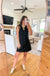 Sleek with a hint of playful edge, this Black Mini Dress is a modern classic made for nights out and polished days alike. Designed with a structured collar and faux button detailing down the front, it channels a tailored look while keeping things effortless.
