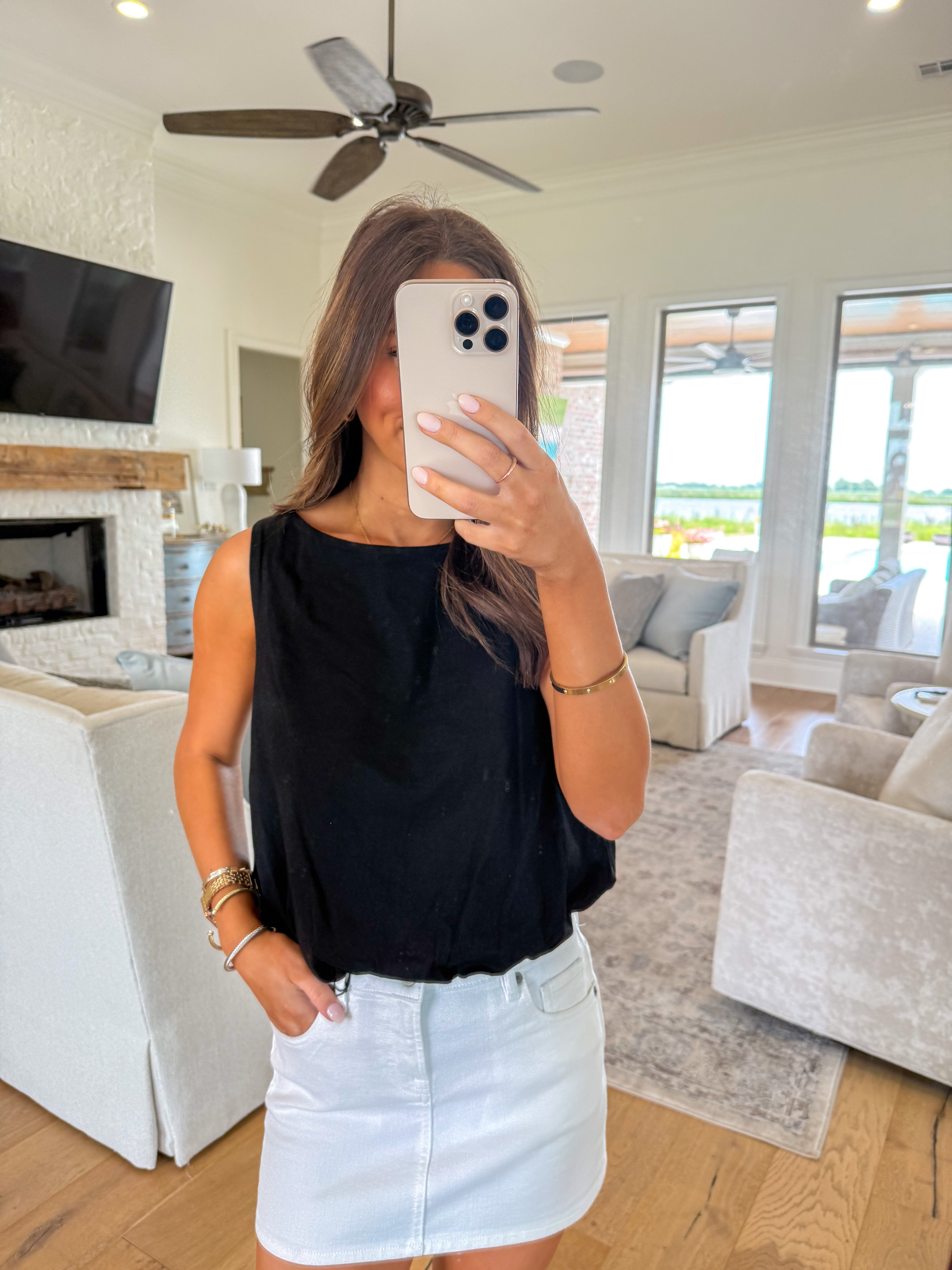 Elevate your everyday style with the Alta White Top—a fresh and modern take on the classic tank. Designed with a flattering bubble hem for a softly structured silhouette, this sleeveless top features a round neckline and is crafted from a buttery-soft fabric that feels as good as it looks. Perfect for layering or wearing on its own, the Alta brings effortless polish to any outfit—from laid-back denim to tailored shorts. A must-have staple for warm-weather days.