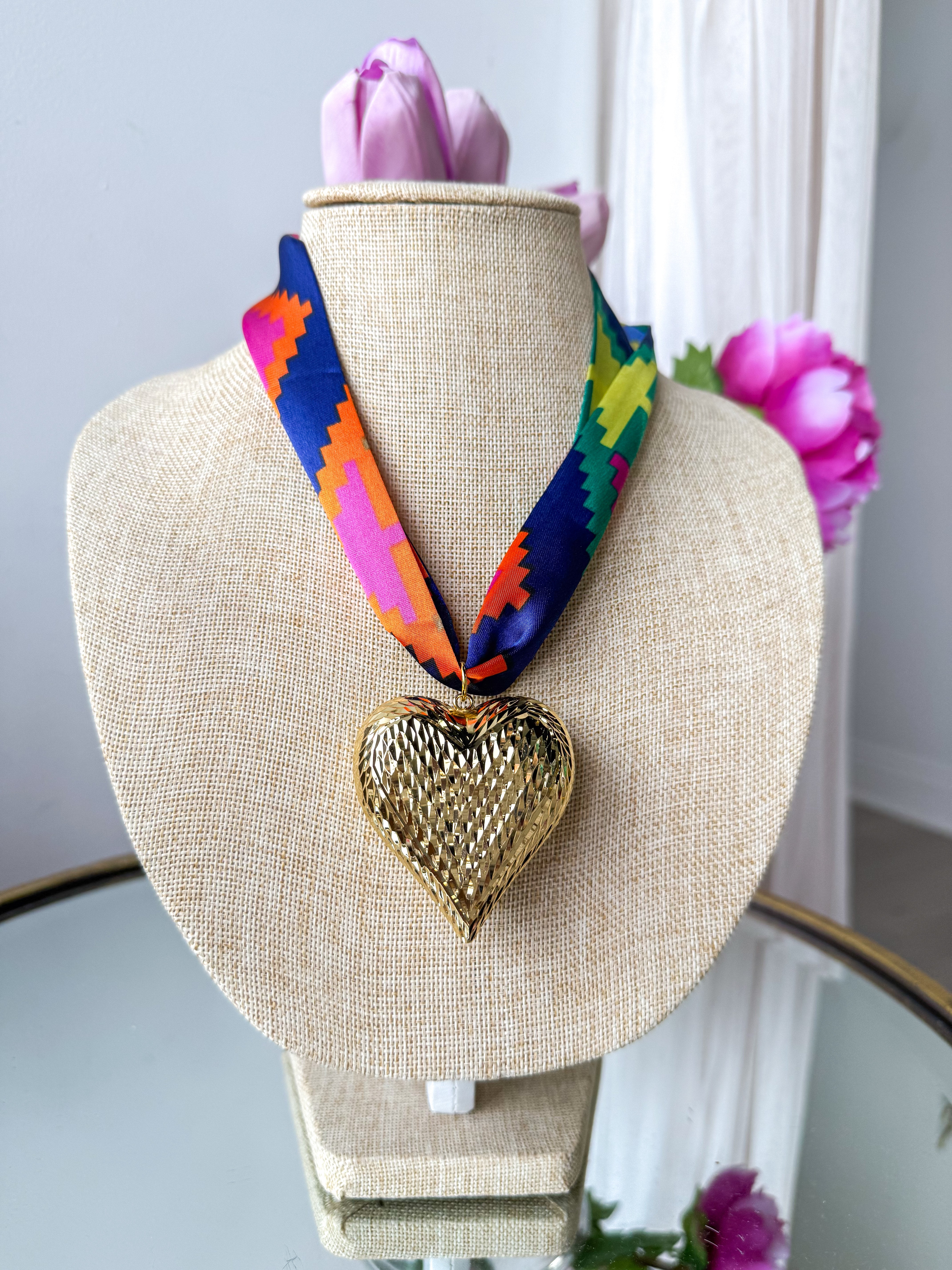 Colorful Large Heart Scarf Necklace