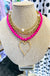Gemstone Beaded Necklace w/ XL Heart Hot Pink