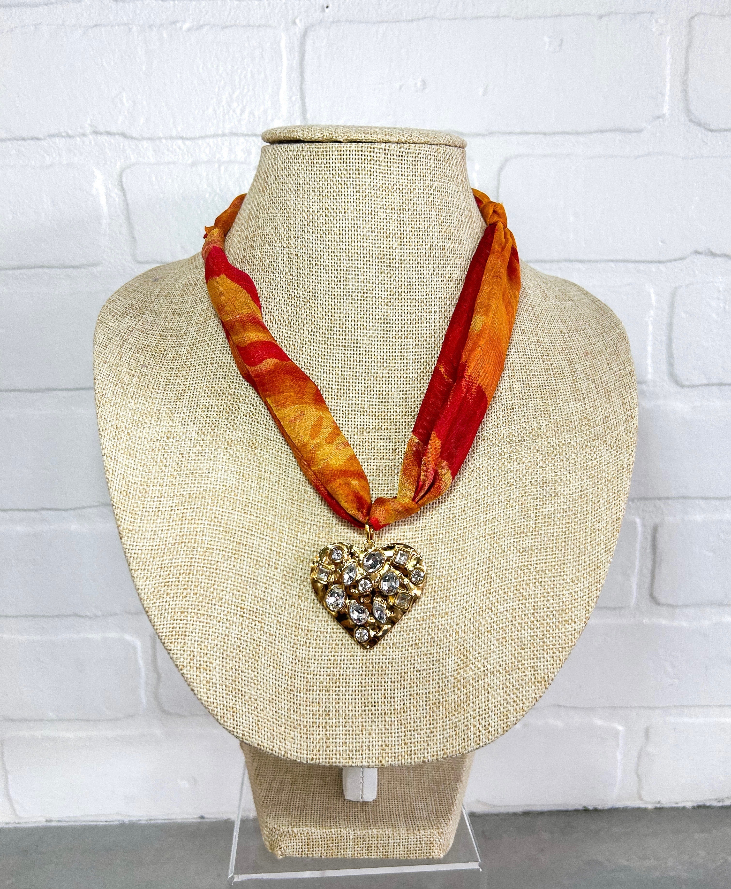 Red/Orange Ombre Heart Scarf Necklace