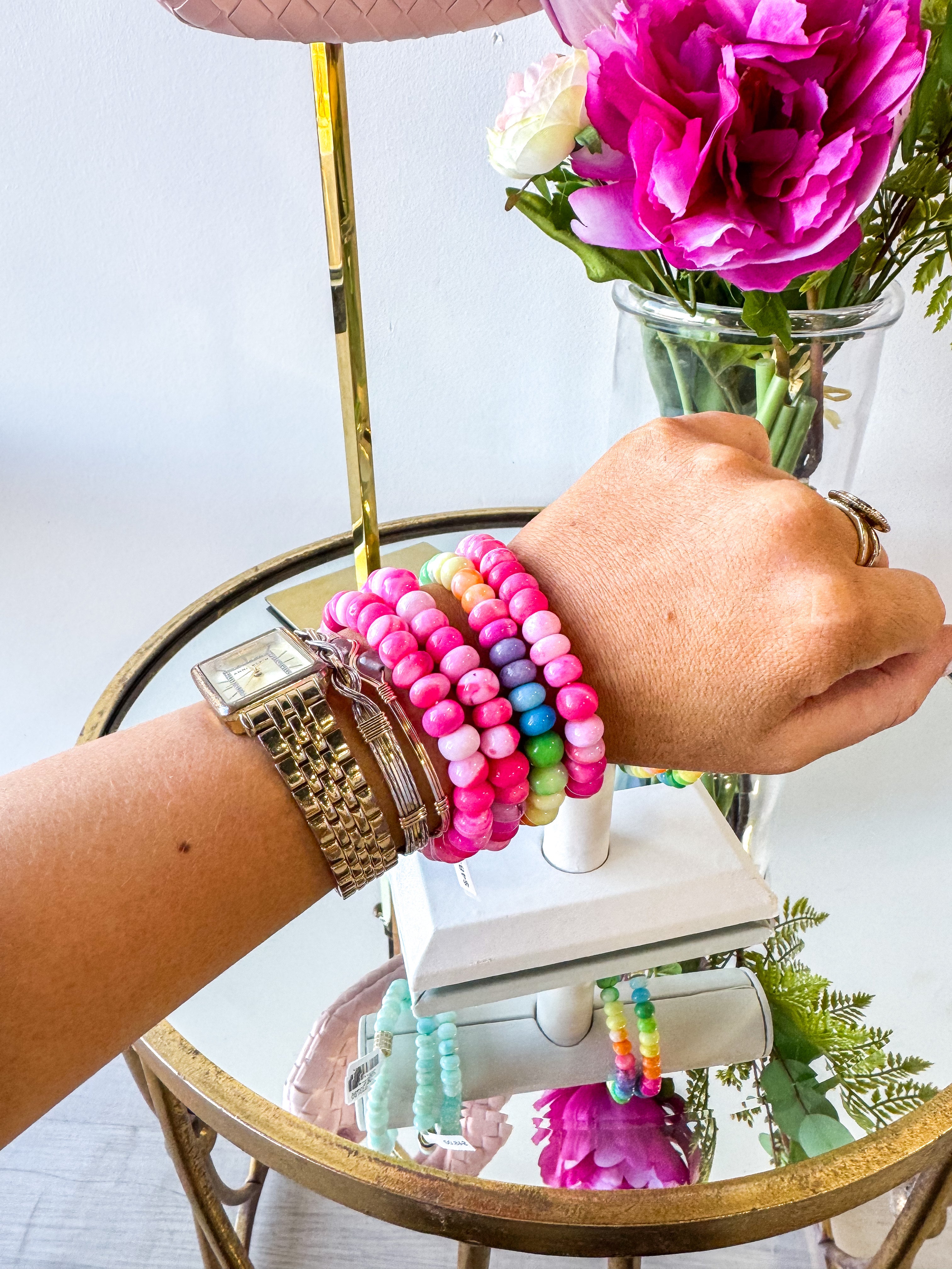 The dyed opal and cz pave of the Sangria Bracelet will add a touch of elegance, while the stretch and hand-beaded design keep it comfortable and unique. The Sangria Bracelet is perfect for any occasion.