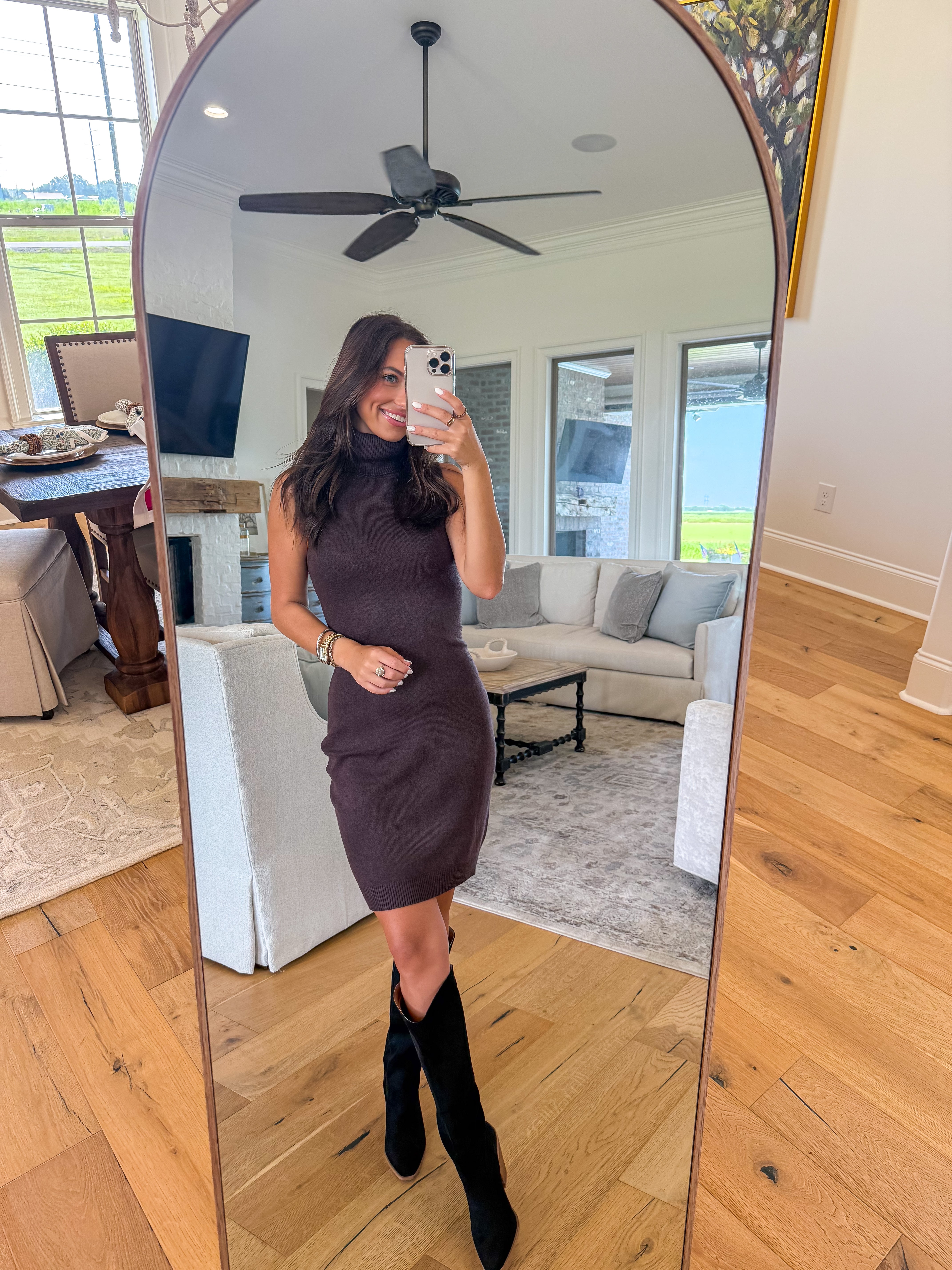 Effortlessly sleek and endlessly versatile, The Serena Cacao Sweater Dress is your go-to for transitional dressing. Designed in a rich brown hue, this sleeveless turtleneck dress features a lightweight knit and a flattering, easy silhouette that falls just above the knee. The high neckline adds a touch of sophistication, while the sleeveless cut makes it perfect for layering or wearing solo. Dress it up with boots or keep it casual with sneakers — The Sierra offers cozy style with a refined edge.